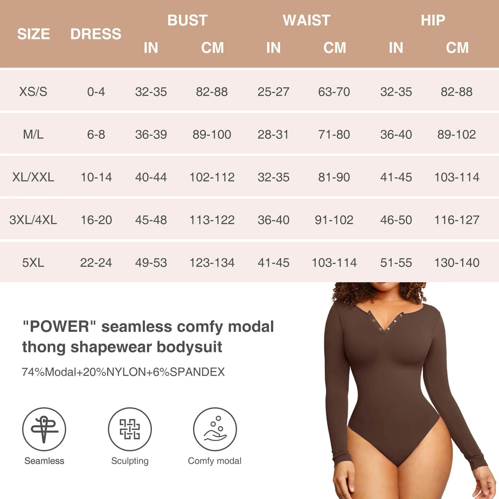 Material: 74%Modal+20%NYLON+6%SPANDEX