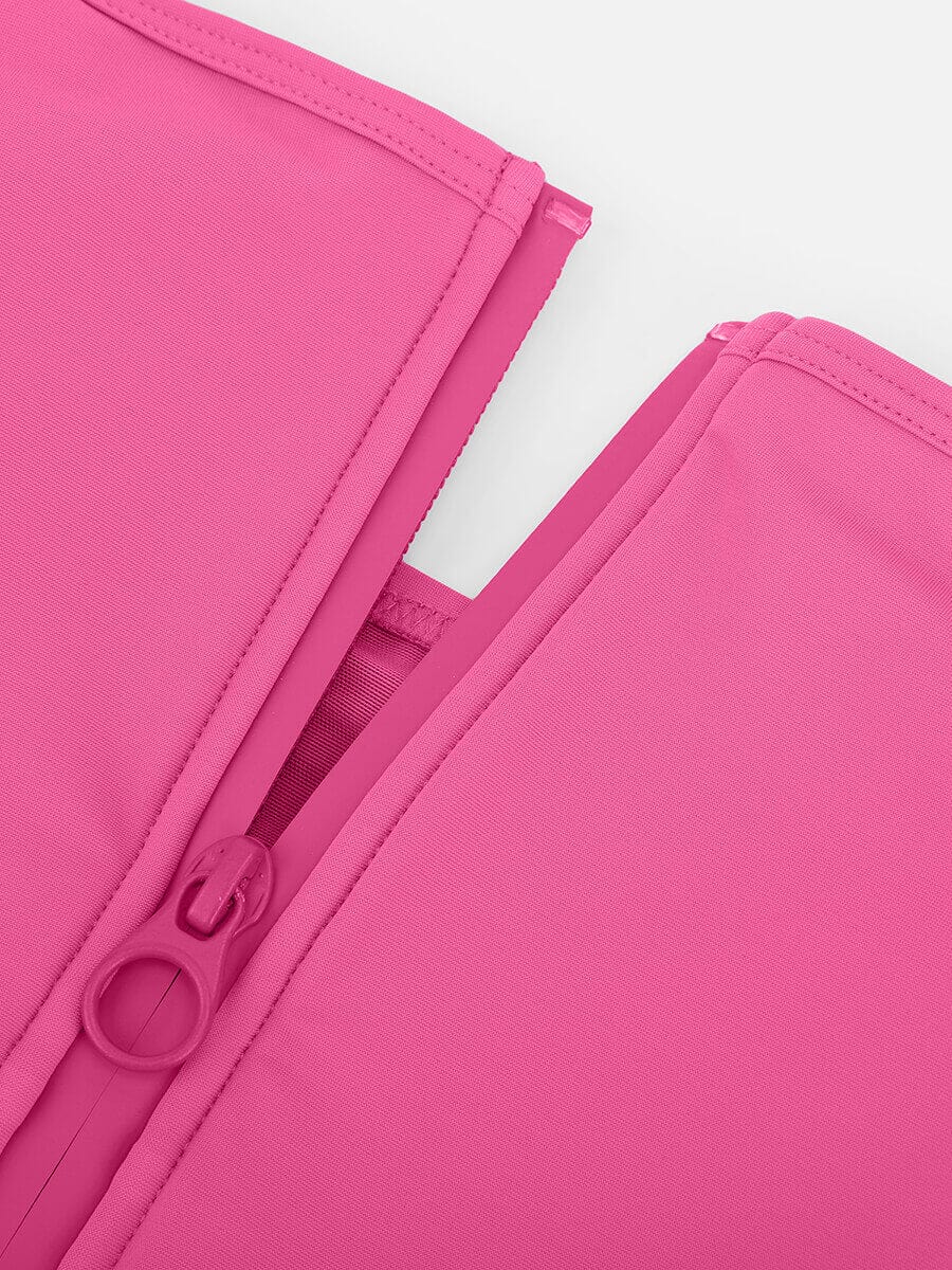 2. Waterproof center front zipper with built-in 9-button buckle for easy closure;